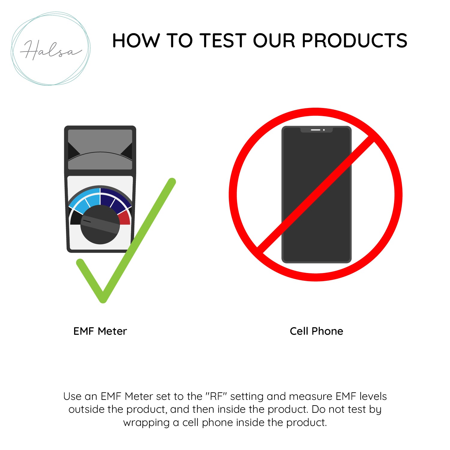 For accurate testing, employ an EMF meter to measure RF levels inside and outside the band—our tests near a wireless router showed readings drop from over 15mW/m² to under 0.3mW/m², aligning with safe thresholds below 1mW/m². Embrace peace of mind with this supportive, fashionable EMF protection solution.
